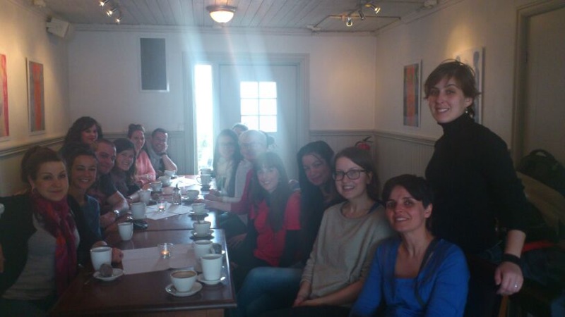 Después de la excursión, volvimos al apartamento donde nos preparamos la comida e inmediatamente de terminar, nos dirigimos al café donde Britt-Krisitin y Anacleta, otra de las profesoras (y que tiene un castellano excelente) nos estaban esperando. Ha sido realmente interesante mantener una conversación con ella (ovbiamente todo en noruego), ya que de esta forma, nuestra inmersión lingüística al Bokmål siempre será favorecida. Hoy ha sido una buena oportunidad para practicar un poco esta nueva lengua que poco a poco va entrando en nuestras vidas.