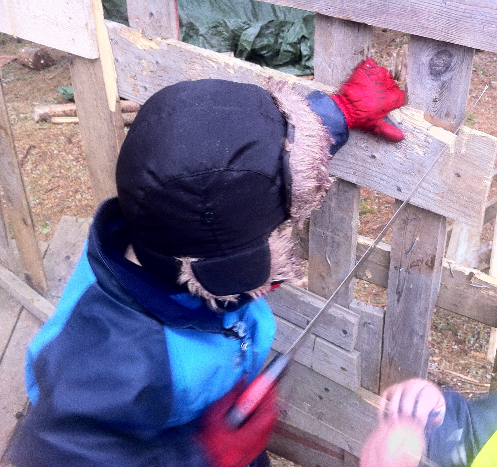 Observo a los menudos, jugar con herramientas de carpintería, jugando en estructuras llenas de astillas y dotadas de clavos sobresalientes y oxidados por doquier, sin ningún tipo de protección y aún así, los niños no se lastiman, no sufren absurdos accidentes ni veo constante preocupación en la cara de Hilde al ver moverse los chavales por el bosque. Los niños aprenden deprisa y si una vez, se lastimaron con un clavo o por jugar con alguna herramienta de forma indebida, no vuelven a tropezar en esa piedra más. A decir verdad, me agrada ver el sistema que tienen aquí para los niños y me vienen a la cabeza algunos pensamientos en voz alta que obviamente pueden no ser compartidos por algunas personas, especialmente las más preparadas que yo en lo que concierne a la pedagogía, ya que, este es precisamente, mi humilde pensamiento en voz alta como simple observador, profano en la materia: