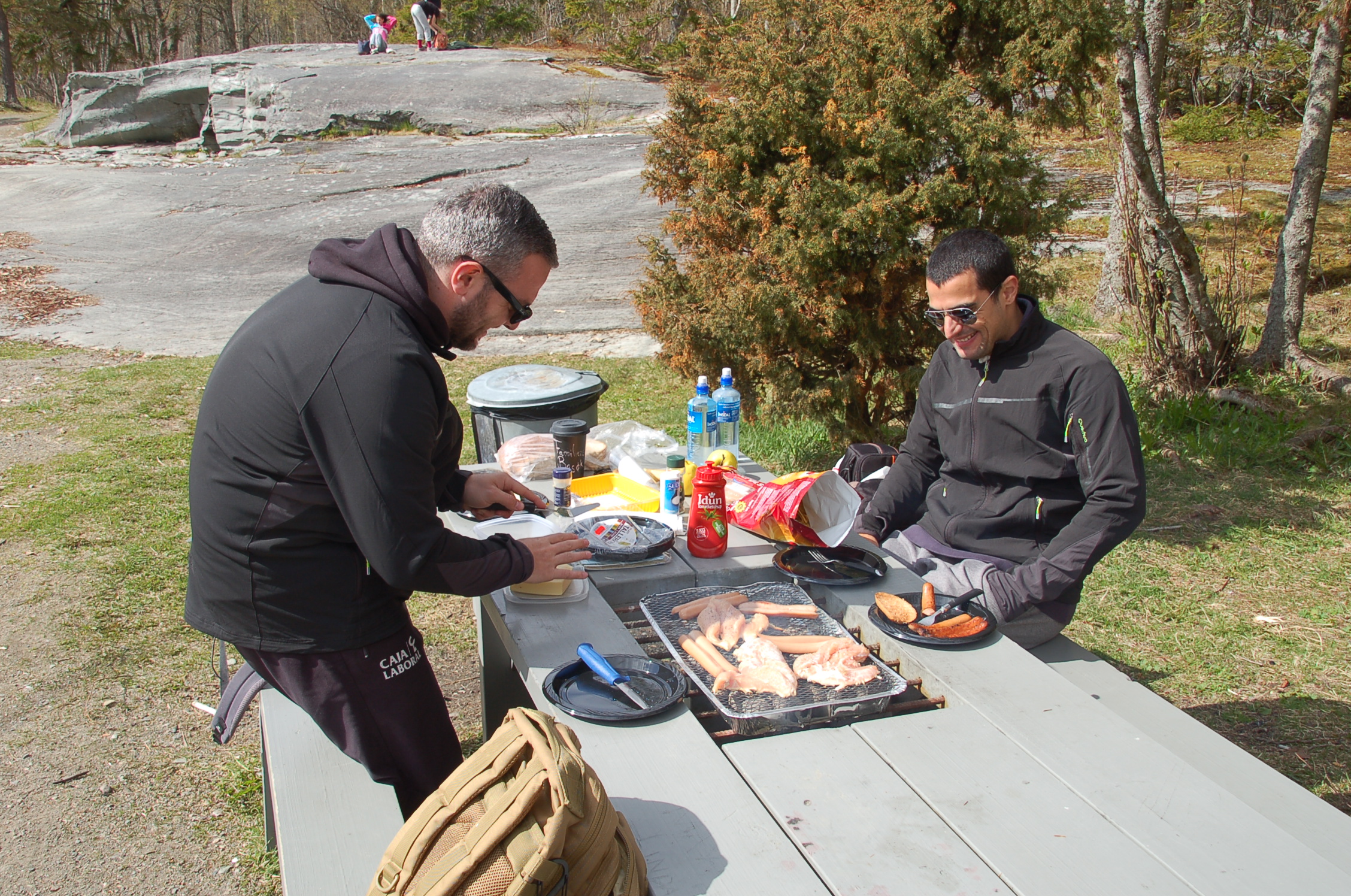 Dicho y hecho, el tiempo aguantó y pudimos disfrutar de unas deliciosas hamburguesas y pollo a la brasa mientras el olor a salitre (aunque sea fiordo, hay que considerar que el agua de este es ligeramente salobre) se mezclaba con la de la carne cocinándose y hacía las delicias de los presentes. A mi padre le encantó aquel sencillo dispositivo con que podía hacerse todo tipo de carne y por su cabeza se le pasó el poder adquirir algunos para llevárselos a Barcelona. Pues no es una mala idea, francamente.