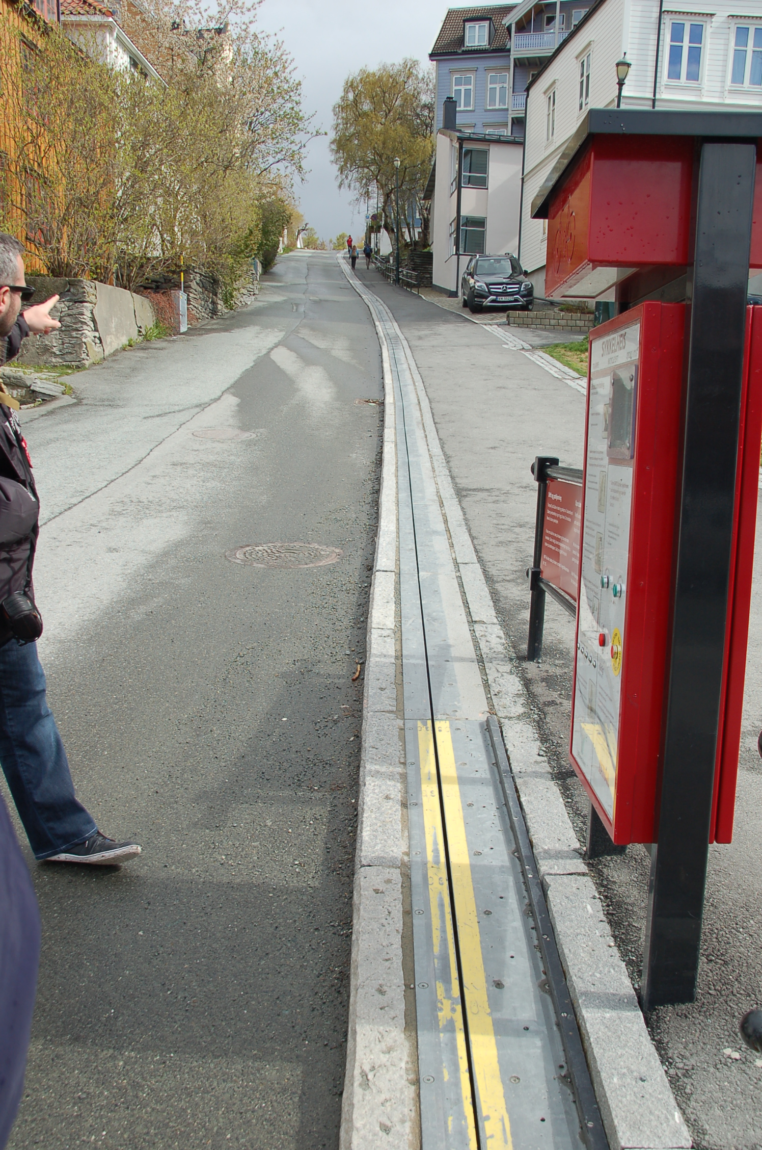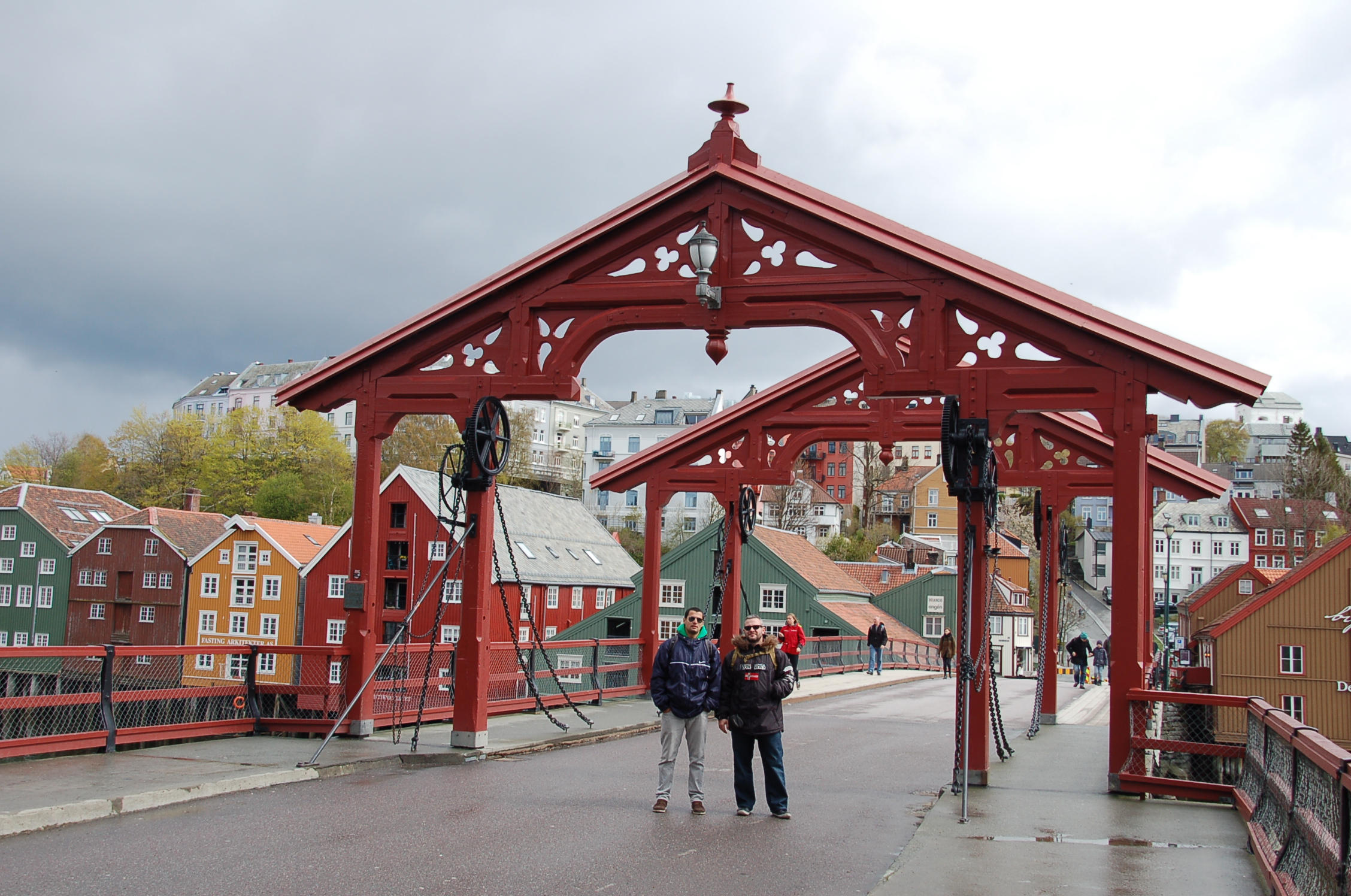 Finalmente dejamos el coche fúnebre estacionado e iniciamos la visita por Trondheim y mientras andábamos por sus calles rodeadas de edificios de madera, mi padre fotografiaba cada rincón de la antigua aunque encantadora ciudad. Vimos la estatua de Olav Tryggvason en el centro de la rotonda peatonal, andamos hasta llegar a la Catedral de Nidaros y su cementerio, un lugar realmente bonito. Atravesamos el puente de Trondheim y desde allí podíamos contemplar el diverso colorido que ofrecían las casas que custodiaban el río que atravesaba la ciudad. Luego, en busca de un lugar donde poder parar para hacer una cerveza, hallamos el ascensor para bicicletas (más parecido a un tele-arrastre que ascensor), algo realmente curioso y digno de ver.