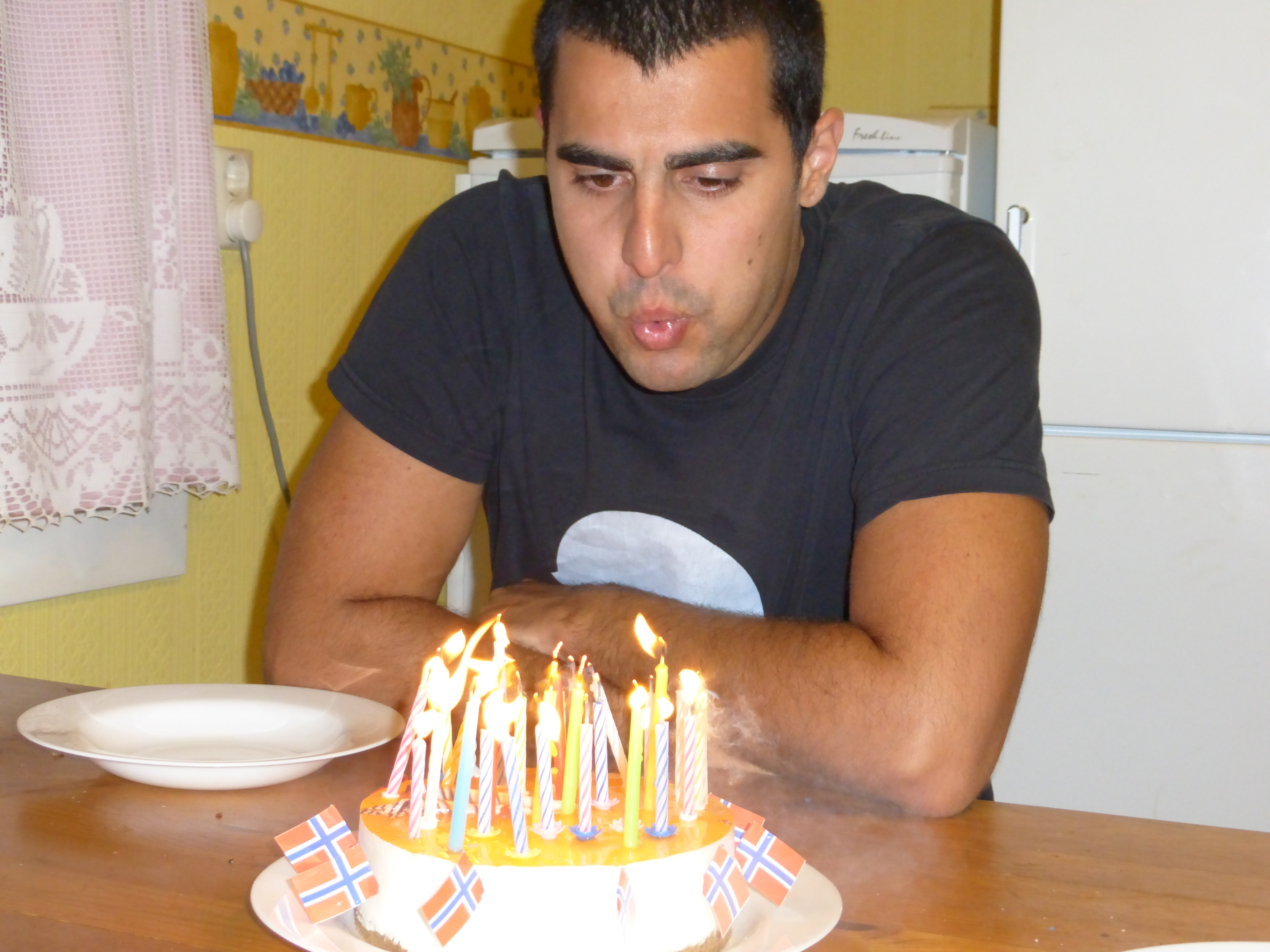 Tras el pequeño tour en el sótano de los horrores y comprobar que todas las casas tienen su lado siniestro, encendimos la chimenea y preparamos una cena especial, ya que íbamos a celebrar el trigésimo cumpleaños de mi hermano (y también su primer cumpleaños en Noruega) y lo celebramos como solo en casa en Barcelona solemos hacer: Pà amb tomàquet (Pan con tomate a los Catalan Style), embutidos varios, queso semicurado (cortesía del Sr. Aldrufeu senior) y unas cervezas Estrella Galícia que uno puede adquirir en cualquier supermercado de aquí, pagando un poquito más ya que son de importación. La ocasión lo merecía. Tras soplar las treinta velas del pastel y hacernos las fotos de rigor, hablamos por Skype con mi madre y nos fuimos a dormir temprano para ir poder seguir con el tour al día siguiente.