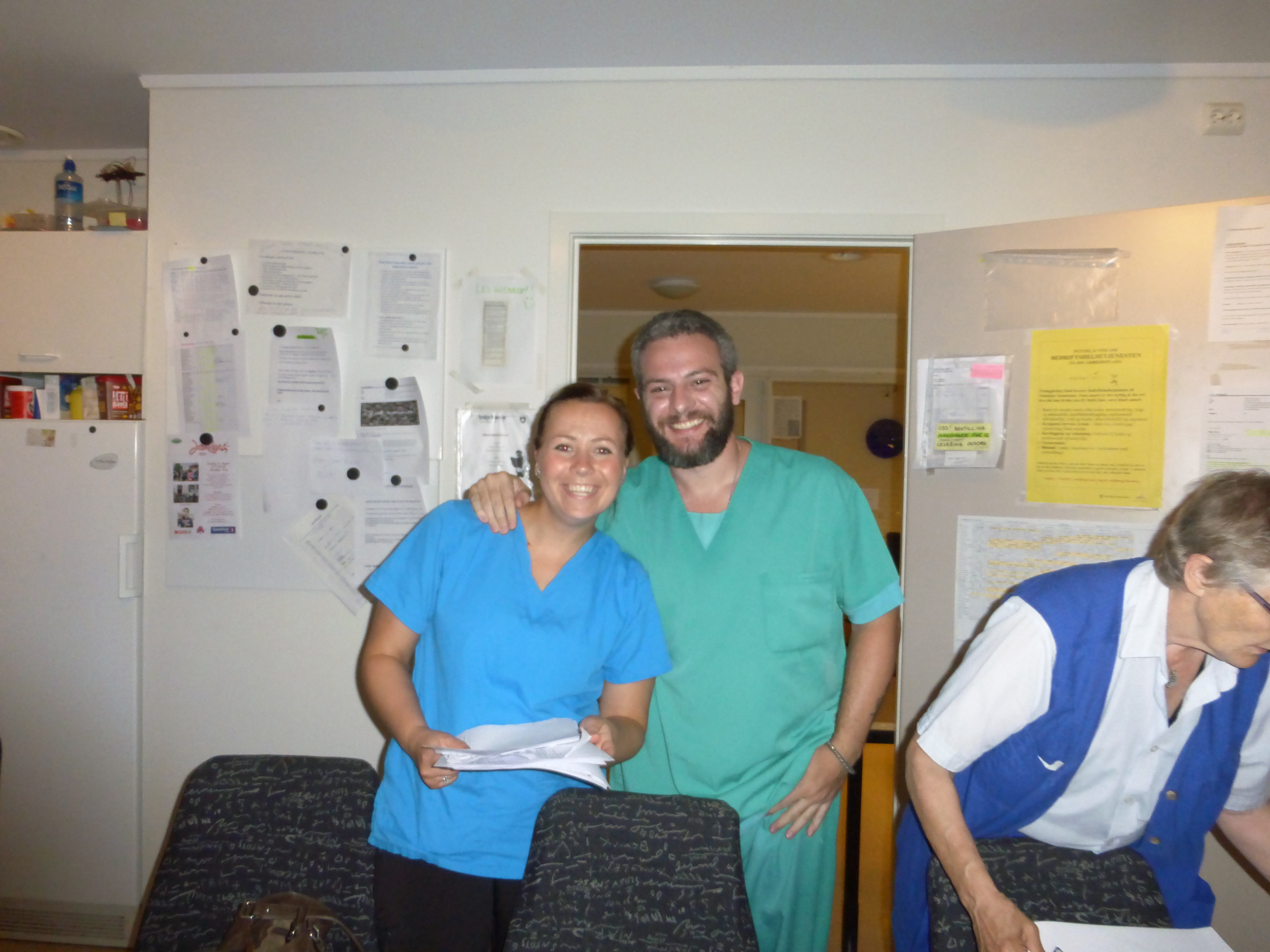 Las siguientes personas a mencionar son todo el colectivos de enfermeras y auxiliares que laboran en el Hamrum Eldresenter. Personas con ganas de trabajar y con una sonrisa siempre en la boca, nunca han escatimado en bromear conmigo y tratarme como un igual aunque la barrera idiomática, aunque cada vez menor, existe. A todos vosotros, muchas gracias. esto no hubiera sido lo mismo sin vuestro calor, paciencia y amabilidad. Incluso tuvisteis el detalle de invitarme a una de vuestras fiestas post-trabajo (imaginaos asistir una «pequeña» reunión de cuarenta personas en una inmensa casa al lado de los verdes campos de cultivo que bañan todo el paisaje. Ahora imaginaos a esas cuarenta personas sentadas delante de una interminable mesa con todo tipo de manjares típicos noruegos, toda clase de bebida y tertulia sana donde hablar de trabajo estaba sino prohibido, al menos en absoluto recomendable). A vosotros, Joar, Mette, Sigrid, Ingrid, Julianne, Torill, Mildrum, Gury, y muchos mas, y sin olvidar a Ørjan «The Big Boss», muchísimas gracias, hjertelig takk!!.