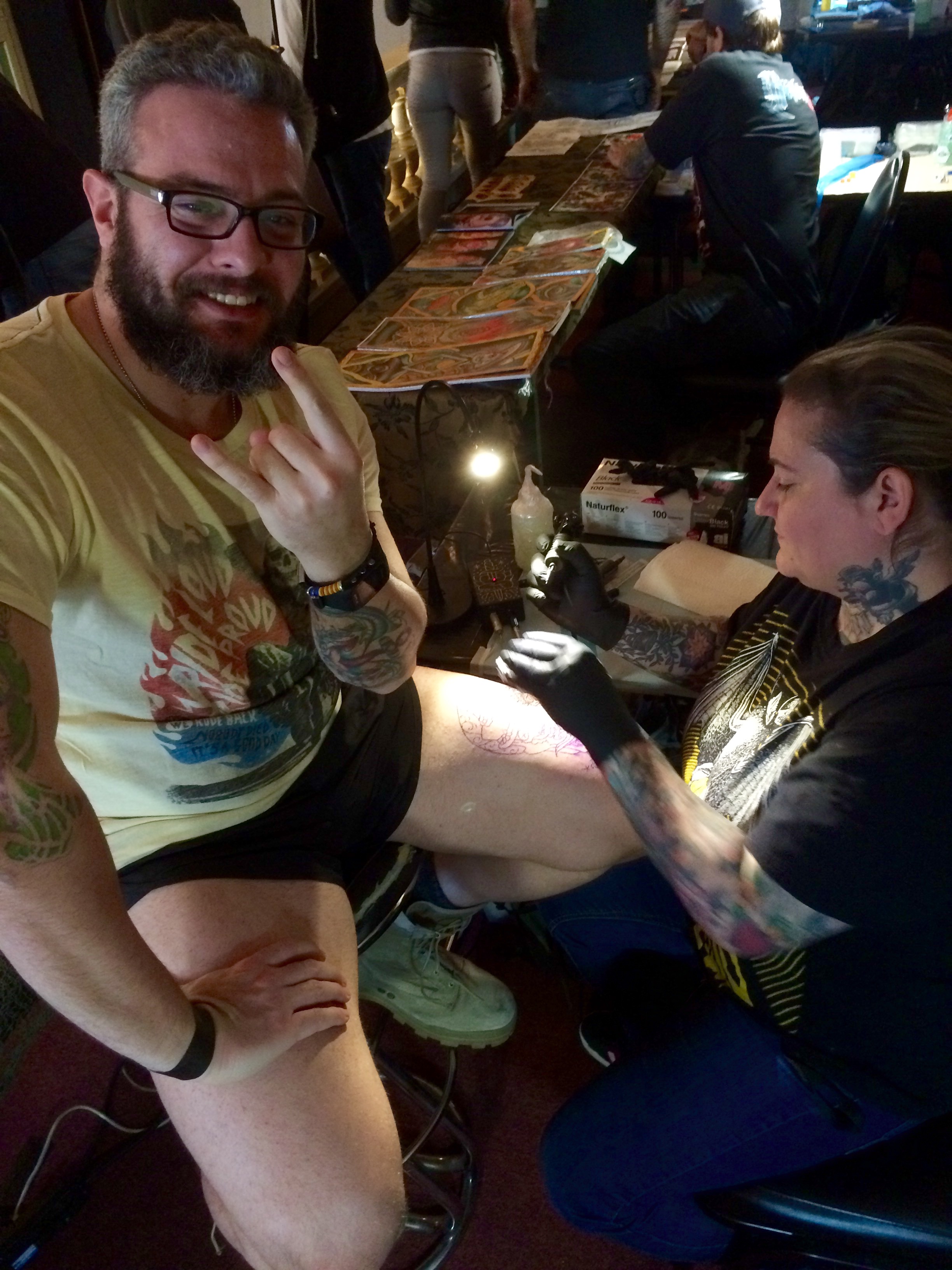 Tras charlar un rato con ella acordamos que volvería a visitarla a las seis de la tarde, hora de abertura de la convención, y que me facilitaría un pase de tres días. Si soy sincero, estaba nervioso, era mi primera vez en una convención de tatuajes y francamente, no sabía que podía encontrarme pero bueno, como soy «echao pa’lante», que le vamos a hacer.