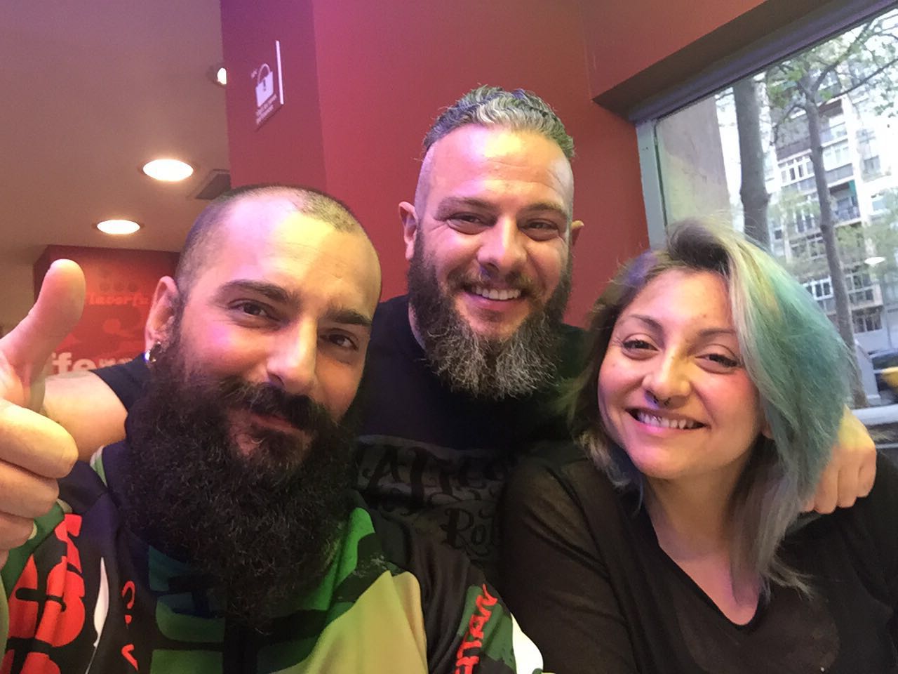 Sin ser excesivamente alto y excesivamente corpulento, su presencia allí a dondequiera que va, levanta miradas de respeto y no es para menos: pasea parsimoniosamente con una poblada barba, andares tranquilos, mirada penetrante que comúnmente esconde detrás de unas gafas de sol y una buena colección de tatuajes diseminados por todo el cuerpo que van desde frases inspiradoras hasta las burlonas caras de los dibujos de «Buscando a Nemo» «Minions» y «El Doctor Slump». Es una de esas personas que podrían asemejarse a un pato nadando en un estanque: tranquilo y pausado por encima del agua pero por debajo removiendo las aletas agitadamente y sin pausa alguna. Él, junto con su pareja Lorena, tatuadora profesional (y la culpable de que mi amigo parezca un bonito tebeo pintarrajeado, como diría alguien muy conocido por mi), forman un tándem genial, único e inseparable cuya presencia siempre agradezco.