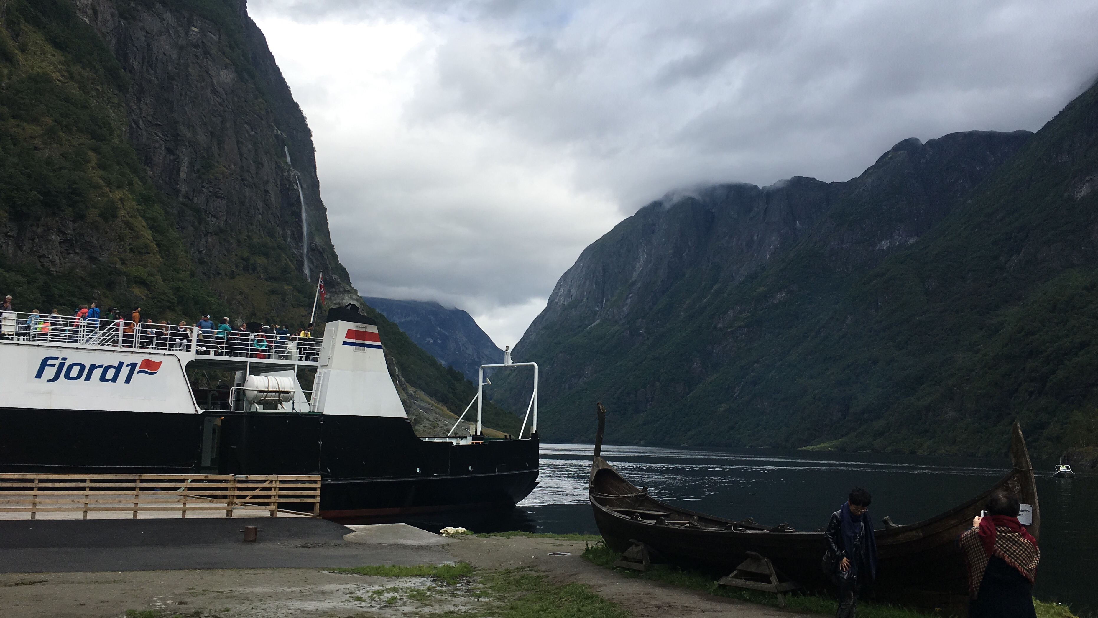 Después de varios viajes en autobús a través de los majestuosos paisajes que solo la región de Sogn og Fjordane posee, llegué a las dos de la tarde a Flåm, un pequeño y turístico pueblo perteneciente a Aurland, rodeado por el fiordo que recibe el mismo nombre que el municipio y por el Sognefjord, el fiordo más grande de Noruega y el segundo más grande del mundo. Se trata de una población de algo más de trescientos cincuenta habitantes que día sí y día también recibe la visita de cientos de turistas que llegan a traves de sus aguas por medio de portentosos cruceros, tan grandes como edificios, atraídos por la belleza del lugar y sin duda, por sus atracciones turísticas más destacables: la ruta por los fiordos mediante un barco, la visita a Ægir Bryggery, la fábrica donde elaboran la cerveza local, cuyo brebaje ha sido galardonado diversas veces con múltiples premios debido a la excelencia de ésta. Por supuesto, no podía faltar tampoco el Flåmsbana, un viaje en un antiguo tren a través de las montañas y majestuosas cascadas hasta Myrdal, catalogado como uno de los viajes en tren más bonitos del mundo.
