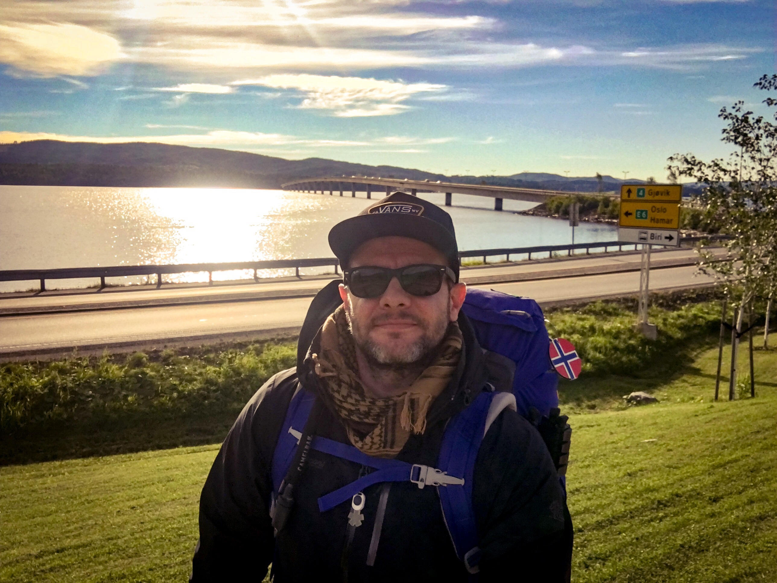 Tras llenar la mochila con lo estrictamente necesario para «sobrevivir» tres semanas a la intemperie, atar con un pulpo la tienda de campaña a Wanderlust y salir por la puerta de casa ataviado con lo previamente mencionado, pareciendo más bien alguien que iba de camino a invadir Polonia en versión turista, salí a las seis de la mañana, aún con el cielo algo oscuro y ligeramente encapotado, dirección a la parada de autobús de Elverum para viajar hasta Hamar y una vez allí, tomar otro autobús con dirección a Mjøsbrua y a su vez, otro transporte me recogería en la parte oeste del puente para llevarme hasta el primer lugar a visitar: Flåm.