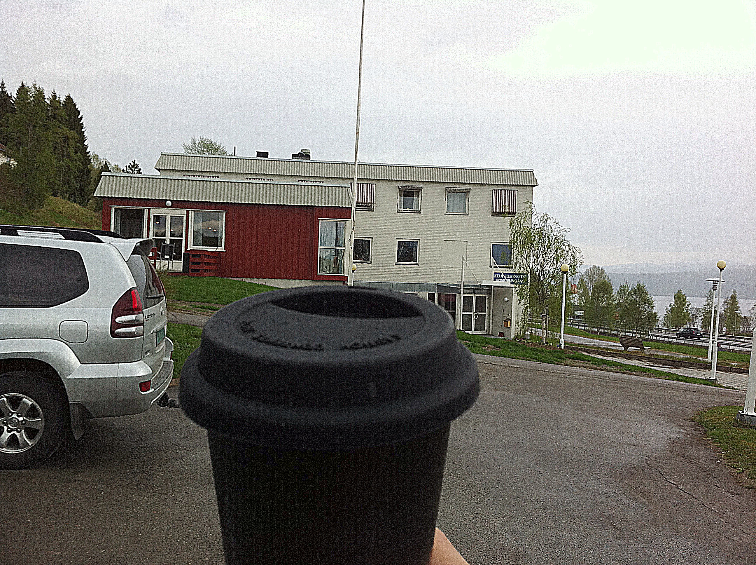 Pues bien, en el momento que hemos encendido la barbacoa portátil, la Ley de Murphy no podía olvidarnos ni tan solo un domingo en Noruega y ha empezado a llover. Primero ligeramente, luego unos tremendos gotarrones que nos han obligado a retirar nuestros bártulos y cobijarnos en el porche del antiguo edificio contiguo a la iglesia, donde habían almacenadas otras sillas y mesas que seguramente servirán para organizar grandes banquetes al aire libre con vistas al fiordo.