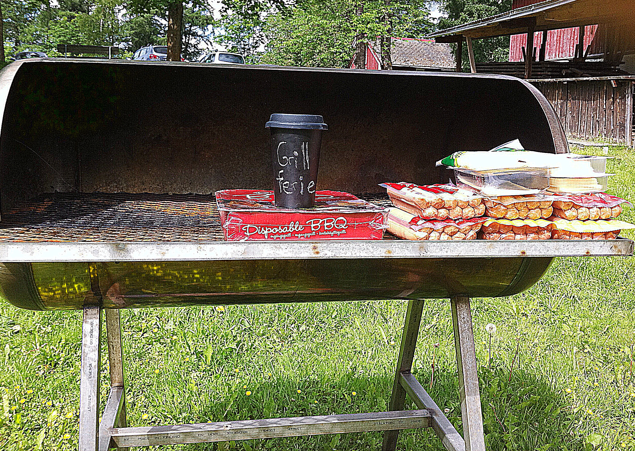 El tiempo no podía ser mejor: sol de justicia con unas pocas nubes grisáceas por los alrededores, cocacolas, patatas, salchichas de frankfurt por doquier y como no, el placer de la buena y sana compañía. Para realizar la barbacoa hemos contado con la inestimable ayuda de dos engangsgrill, un dispositivo portátil que consta de carbón vegetal en un recipiente de papel de aluminio y una rejilla donde colocar la comida a cocinar. Tan solo se requiere un encendedor para prender las brasas. Como podéis ver, coser y cantar.