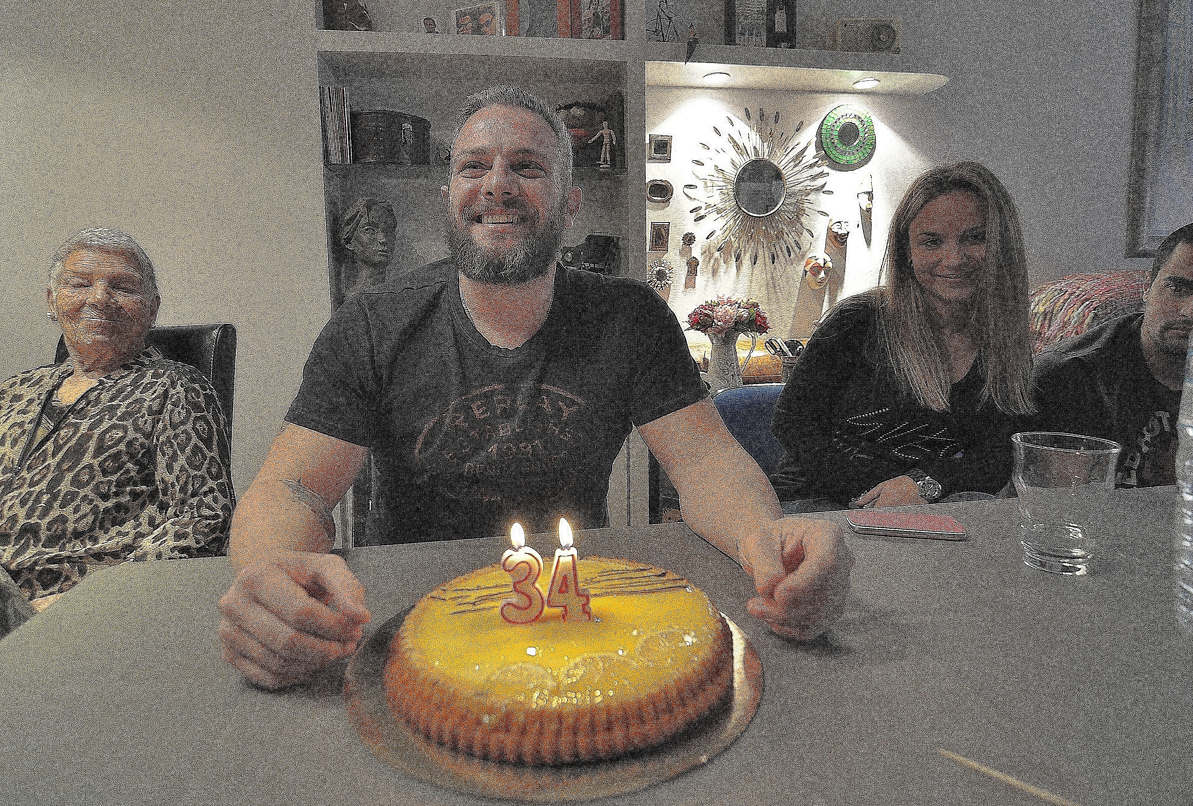 Bien, tal como podéis observar en la imagen, aparezco yo, junto a mi familia (de izquierda a derecha, mi abuela Nuri, Marina, mi cuñada y mi hermano Joan), soplando las velas de mi trigésimo cuarto cumpleaños. Si, efectivamente, pude celebrarlo junto con mi familia en Barcelona, pero dejad que relate lo acontecido por el principio.