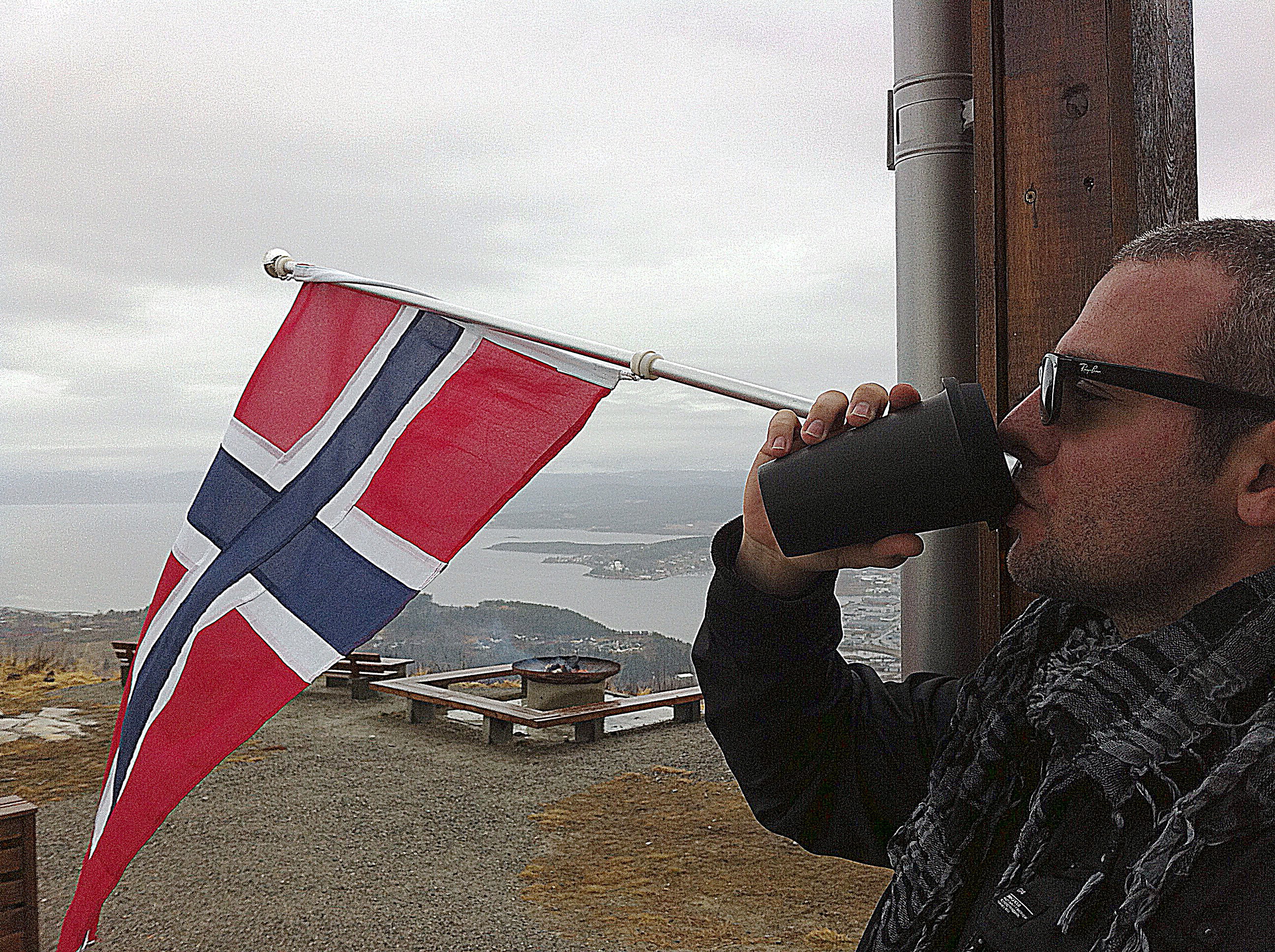 Aprovechando que hoy, 9 de mayo, día de la Ascensión, es fiesta en Noruega y por tanto, cualquier establecimiento está cerrado, hemos decidido hacer una excursión que tenia como excusa, no solo la de conocer un poco más la ciudad que nos acoge o la de estirar un poco las piernas, sino a mi juicio también, la de hacer una actividad conjunta todos juntos, en hermandad. Así que, después de desayunar bien, de vestirnos adecuadamente y calzarnos nuestras mejores botas, nos hemos preparado unos bocadillos y nos hemos dispuesto a iniciar el paseo. Como hoy ha sido un día ligeramente encapotado, acompañado de una ligera y continua llovizna que solo ha cesado en plena tarde, el trayecto prometía ser menos pesado que haberlo realizado con un sol de justicia azotándonos. El destino de hoy: Oftenåsen, una colina que se sitúa a 336 metros sobre el nivel del mar y que, seguramente nos ofrecería una vista esplendida de Steinkjer.